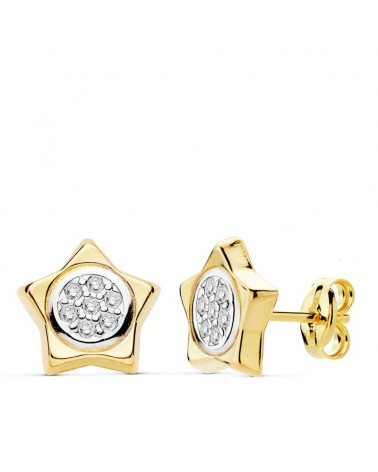 Pendientes oro 18k bicolor estrella 9x9mm