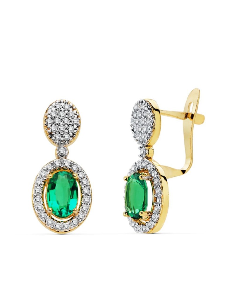 Pendientes oro 18k bicolor circonita verde cierre catalán