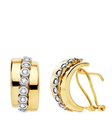Pendientes oro 18k bicolor bandas cierre omega 17x8 mm