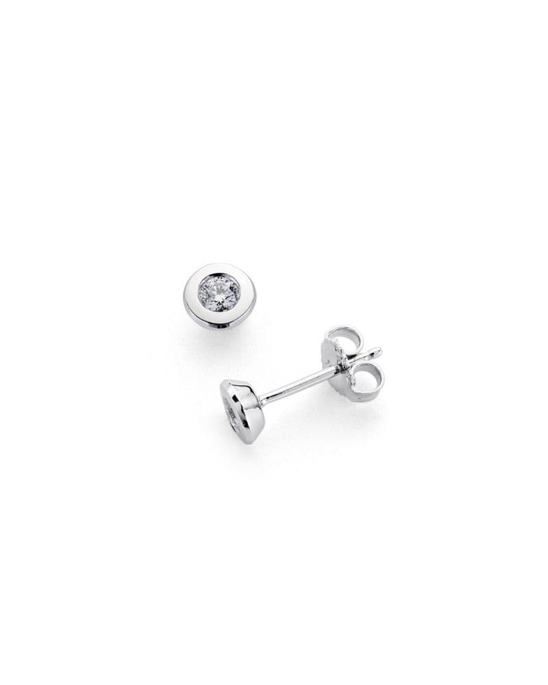Fabricados en oro blanco de 18 quilates, estos pendientes cuentan con diamantes naturales de calidad SI-H con talla brillante. Con un diámetro de 5mm y peso aproximado 1,7 gramos, incorporan un práctico cierre a presión que garantiza seguridad y comodidad durante su uso diario.