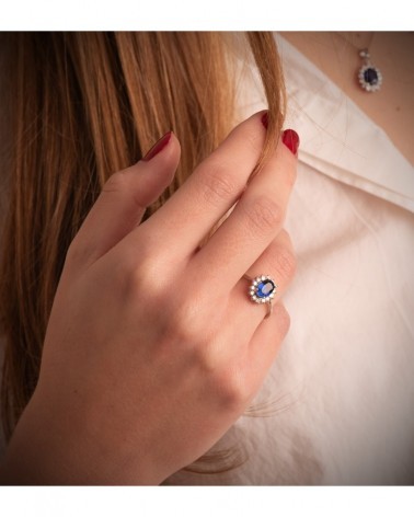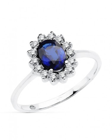 Pendientes de oro blanco de 18 kilates con un diamante con un zafiro de 1,96 quilates rode ado por diamantes. Tienen cierre de omega y diamantes con un kilataje total de 0,70. Son unos pendientes ide ales para llevar o regalar en una situación especial. Estos pendientes forman parte de la colección oro de Falomir joyas. Los pendientes incluyen marca de contraste 750, sello oficial y se entrega con estuche de la marca.