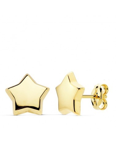 Pendientes oro 18k estrella lisa 10x10 mm cierre presión