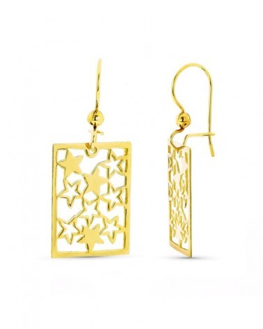 Pendientes oro 18k amarillo estrellas caladas gancho