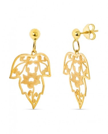 Pendientes oro 18k hojas caladas mate y brillo