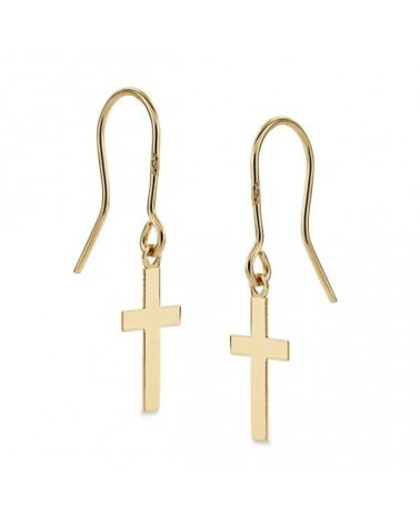 Pendientes oro 18k cruz lisa 12x7 mm