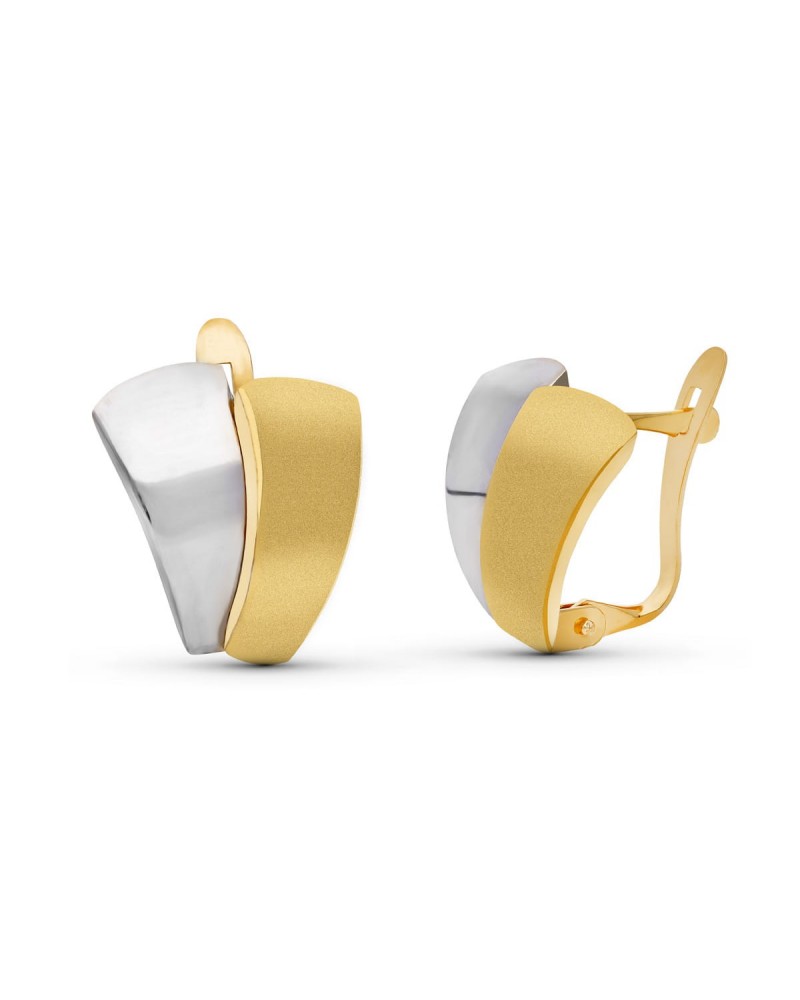 Estos elegantes pendientes de diseño omega destacan por su sofisticada combinación bicolor que juega con el contraste entre el oro amarillo satinado y el oro blanco rodiado con acabado brillante. Su forma geométrica y contemporánea aporta un toque moderno y vanguardista, perfecto para la mujer actual que busca piezas distintivas.
