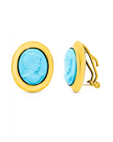 Pendientes oro amarillo 18k camafeo turquesa cierre catalán