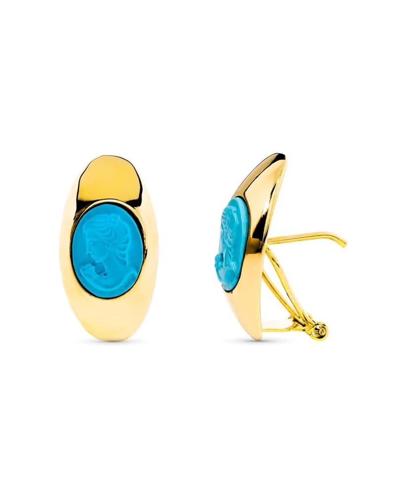 Pendientes oro amarillo 18k camafeo turquesa cierre omega
