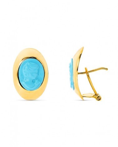 Pendientes oro amarillo 18k turquesa ovalada 20x13mm