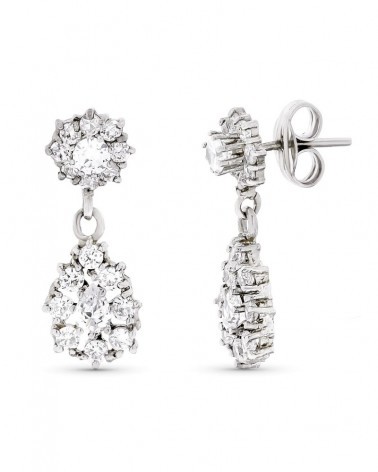 Pendientes oro blanco 18k circonitas largos 21x8mm