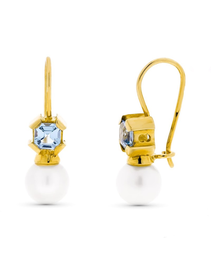 Pendientes oro amarillo 18k aguamarina perla 7mm