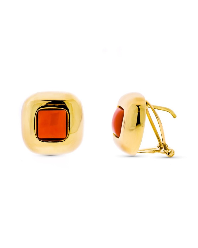 Pendientes oro amarillo 18k coral natural cuadrado cierre omega