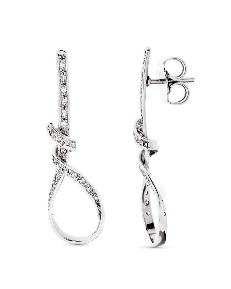 Pendientes oro blanco 18k nudo circonitas 41x12mm