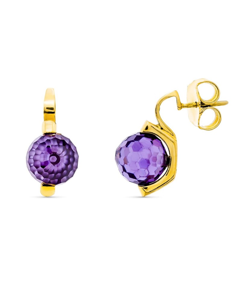 Pendientes oro 18k piedra color morada 10mm presión