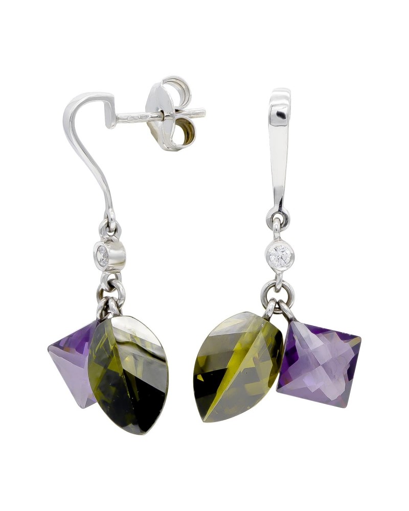 Pendientes oro blanco 18k amatista cierre presión