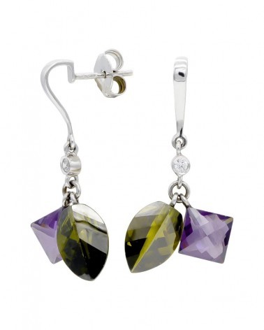 Estos sofisticados pendientes de oro blanco de 18 quilates destacan por su diseño alargado y elegante, con amatistas facetadas de tonos morados que capturan la luz de forma espectacular. El contraste entre el brillo del oro blanco y las piedras naturales crea una combinación refinada y atemporal, perfecta para la colección COLOR.