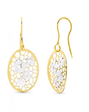 Pendientes oro 18k bicolor flor calada gancho