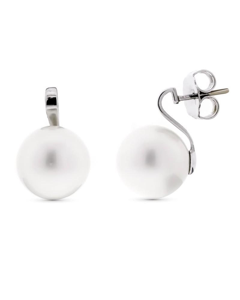 Pendientes oro blanco 18k perla 15mm cierre presión