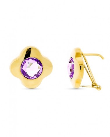 Pendientes oro amarillo 18k trébol amatista cierre omega