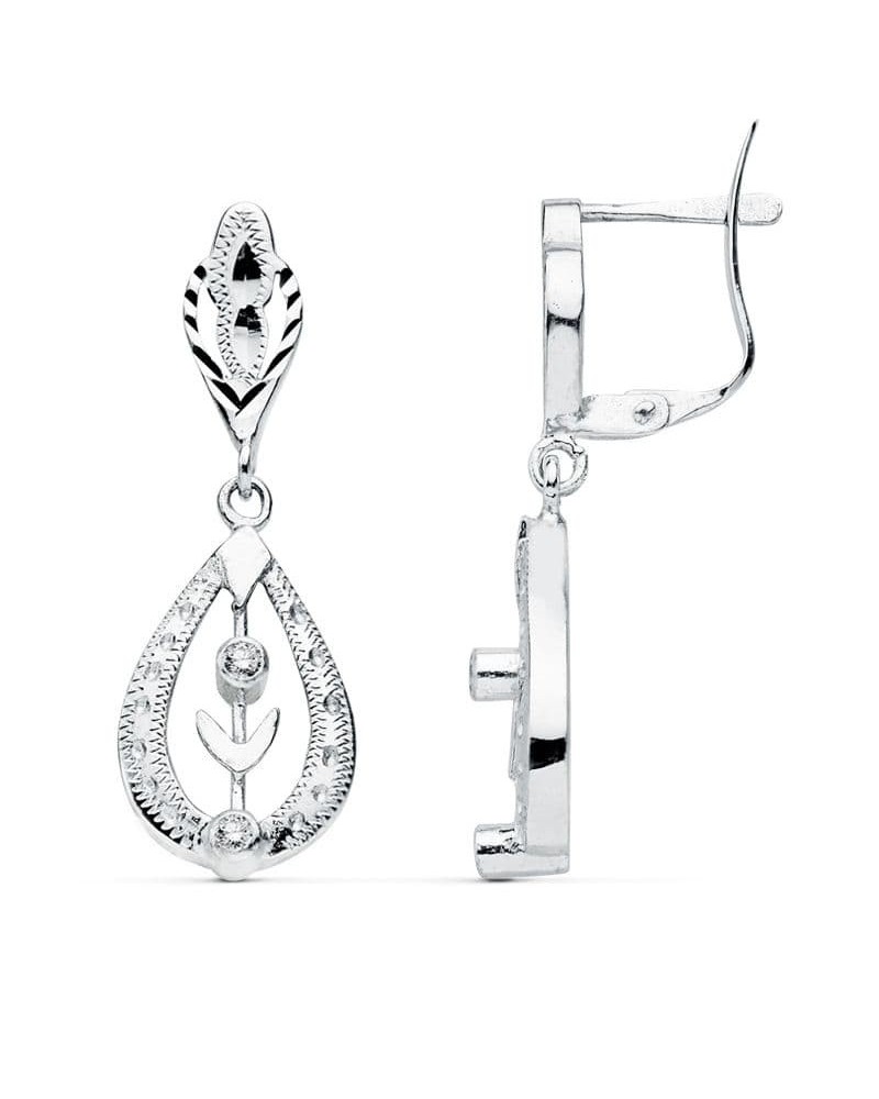 Pendientes oro blanco 18k gota grabada cierre catalán 29x10mm