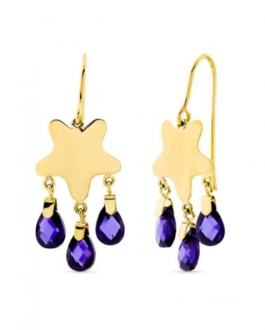 Pendientes oro 18k estrella amatista cierre gancho