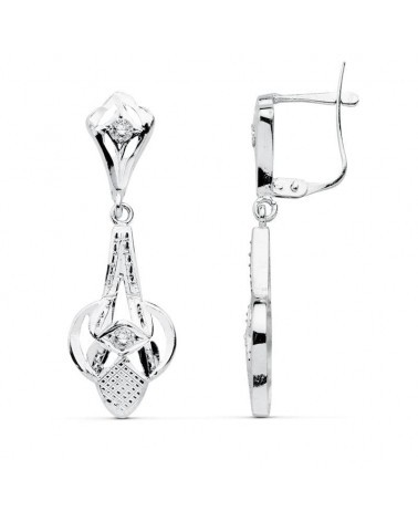 Pendientes oro blanco 18k largos cierre catalán 32mm