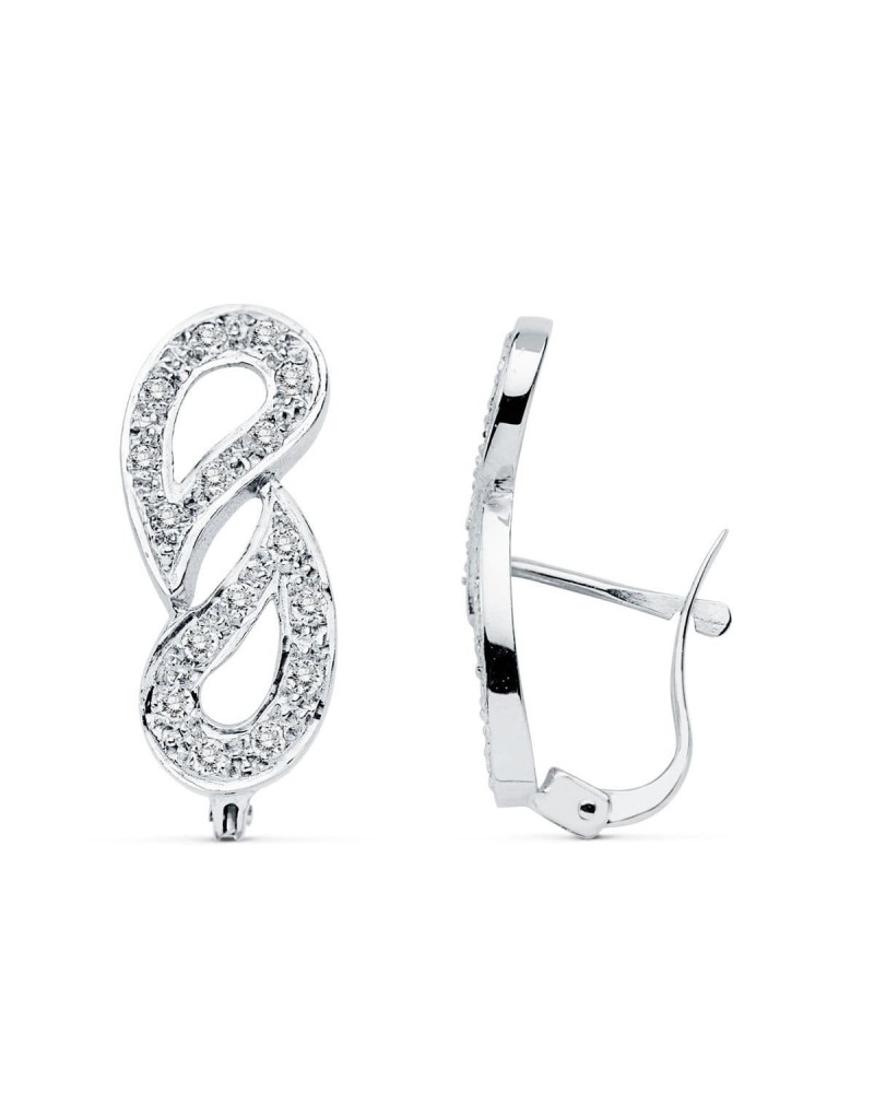 Pendientes oro blanco 18k símbolo infinito circonita catalán