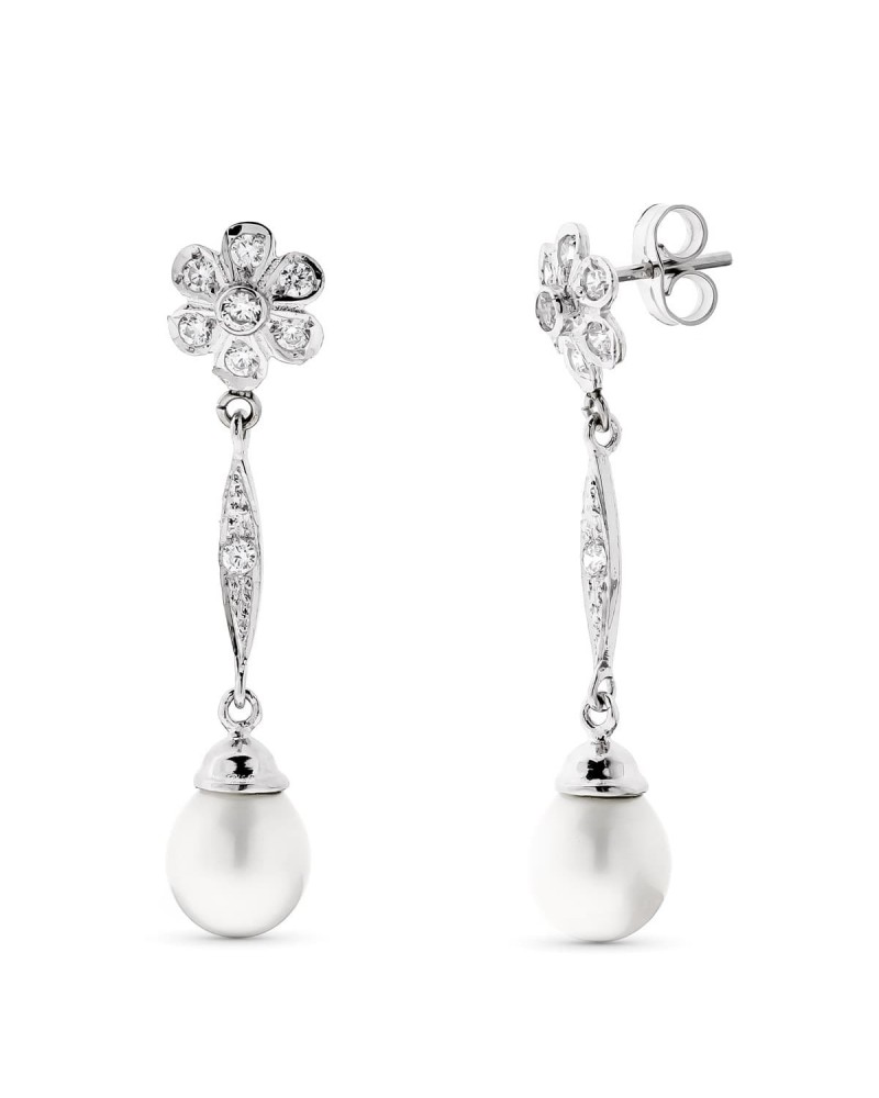 Confeccionados en oro blanco de 18 quilates con acabado pulido que realza tanto el brillo del metal como el de las circonitas engastadas. Las perlas cultivadas presentan un lustre natural excepcional que complementa perfectamente la luminosidad de las circonitas. El cierre de presión garantiza una sujeción segura y cómoda durante todo el día. Con un peso aproximado de 2,9 gramos, ofrecen una presencia notable sin resultar pesados.