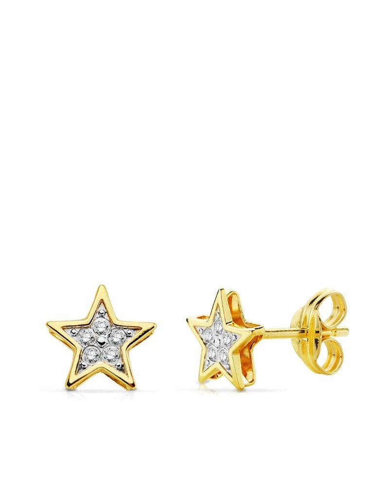 Pendientes oro 18k bicolor estrella 6,5 mm presión