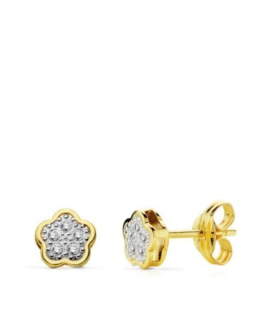 Pendientes oro 18k bicolor flor 5x5 mm cierre presión