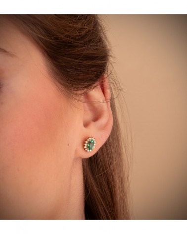 Pendientes oro 18k esmeralda y diamantes laboratorio