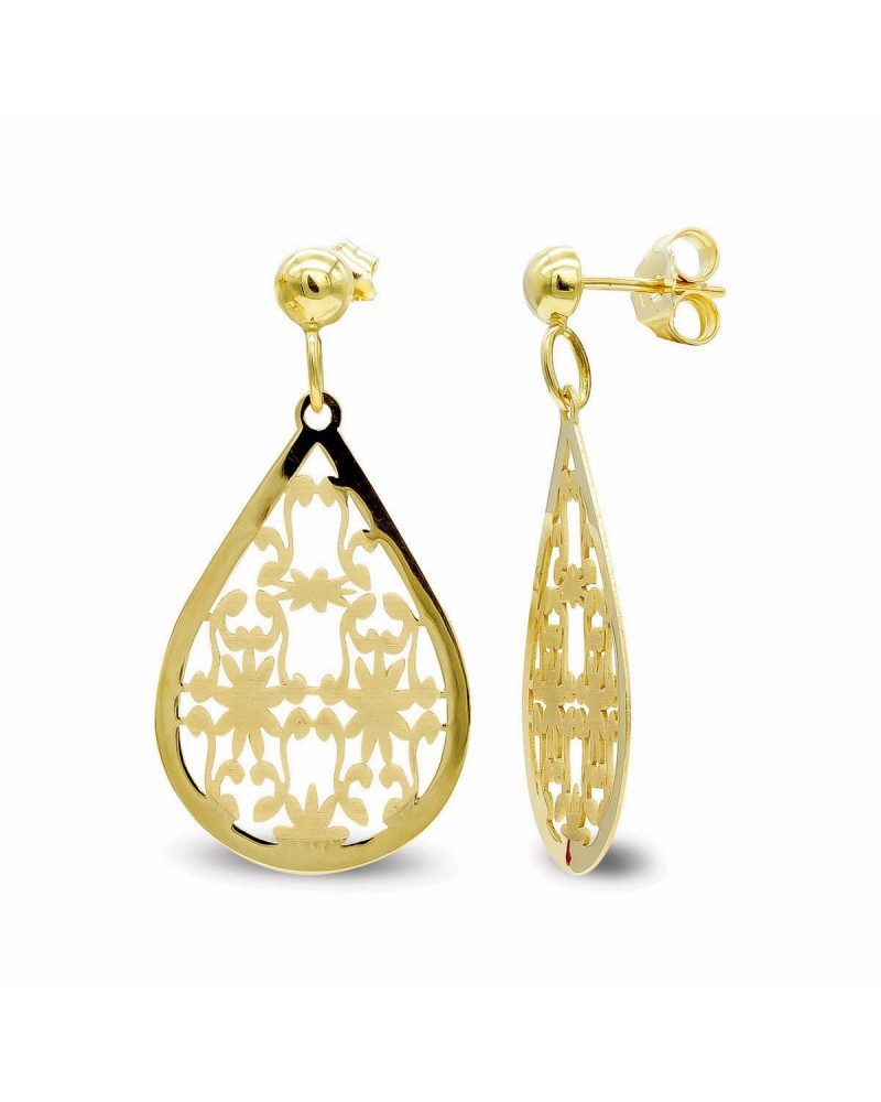 Pendientes oro amarillo 18k calado gota oval 3,7 gramos
