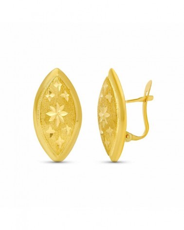 Pendientes oro amarillo 18k marqués tallado floral 22x11mm