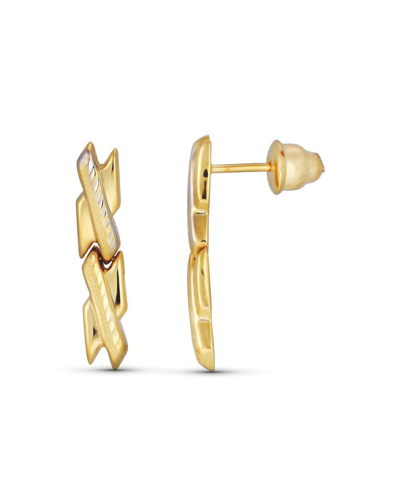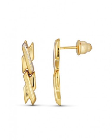 Estos elegantes pendientes presentan un sofisticado diseño tallado en oro amarillo que destaca por la combinación de acabados pulidos y texturizados. Las formas entrelazadas crean un juego de luces y sombras que aporta dinamismo y elegancia a la pieza, convirtiendo estos pendientes en un complemento perfecto para cualquier ocasión especial.