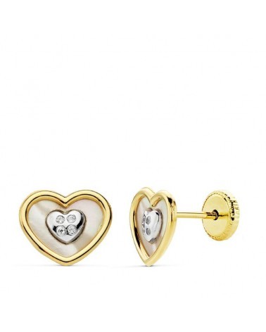 Pendientes oro 18k bicolor corazón nácar dormilón