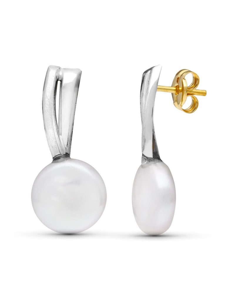 Fabricados en oro blanco de 18 kilates, cada pendiente incorpora una perla cultivada de 9 mm de diámetro que aporta un brillo nacarado característico. Con un peso aproximado de 0,7 gramos, estos pendientes cuentan con un práctico cierre a presión que garantiza comodidad y seguridad durante su uso diario.