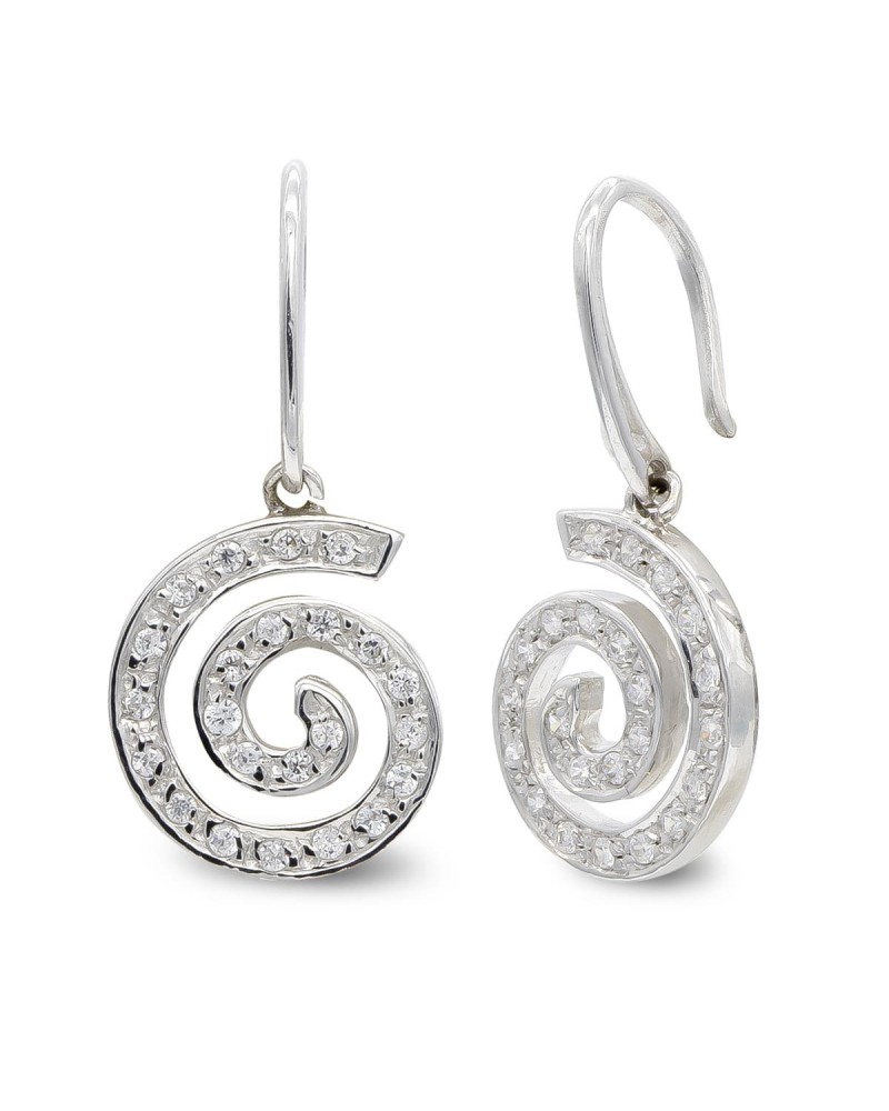 Pendientes oro blanco 18k espiral circonita cierre gancho