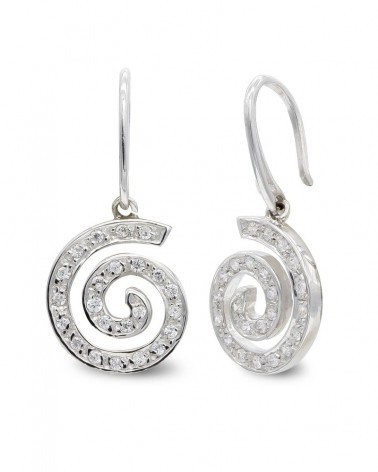 Confeccionados en oro blanco de 18 kilates con acabado pulido que realza su luminosidad natural. Las circonitas están perfectamente engarzadas siguiendo la línea espiral del diseño. Con unas medidas de 15x13 mm y un peso aproximado de 3,9 gramos, ofrecen presencia sin resultar pesados. El cierre de gancho asegura un uso cómodo y seguro durante todo el día.