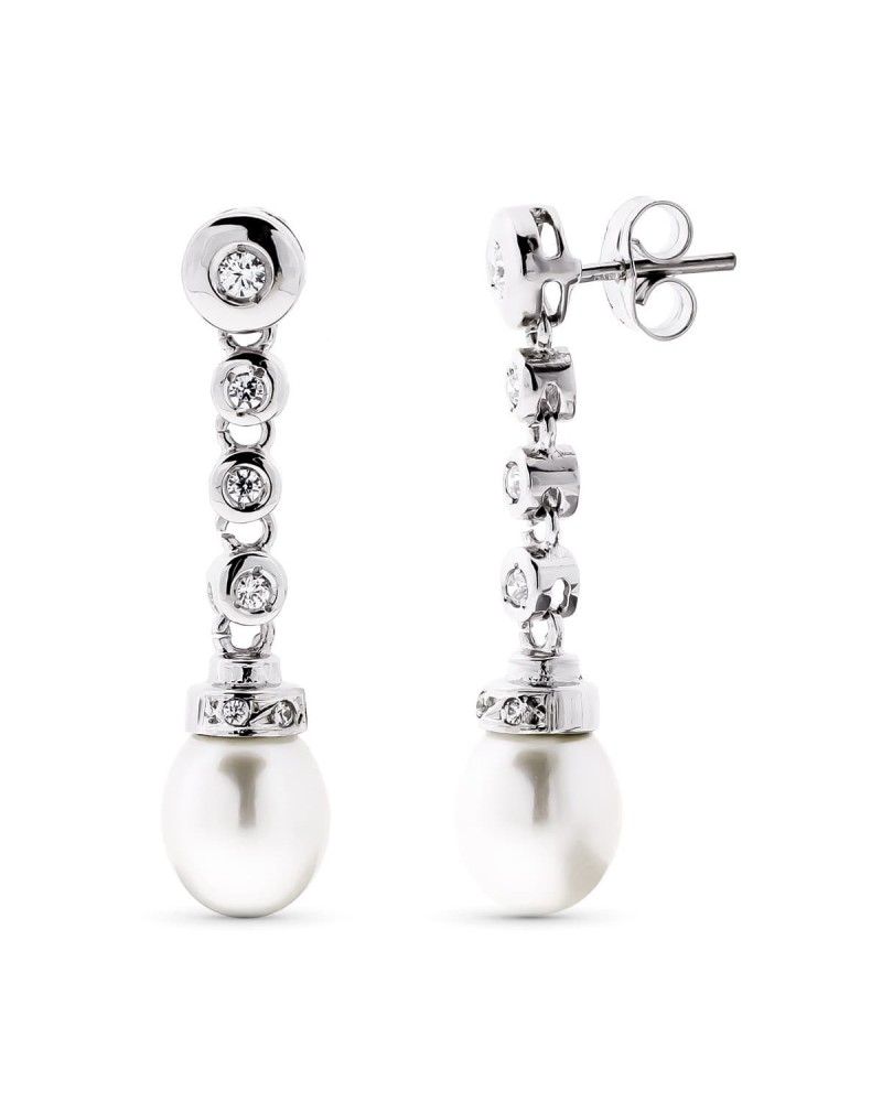 Pendientes oro blanco 18k perla cultivada circonita largos