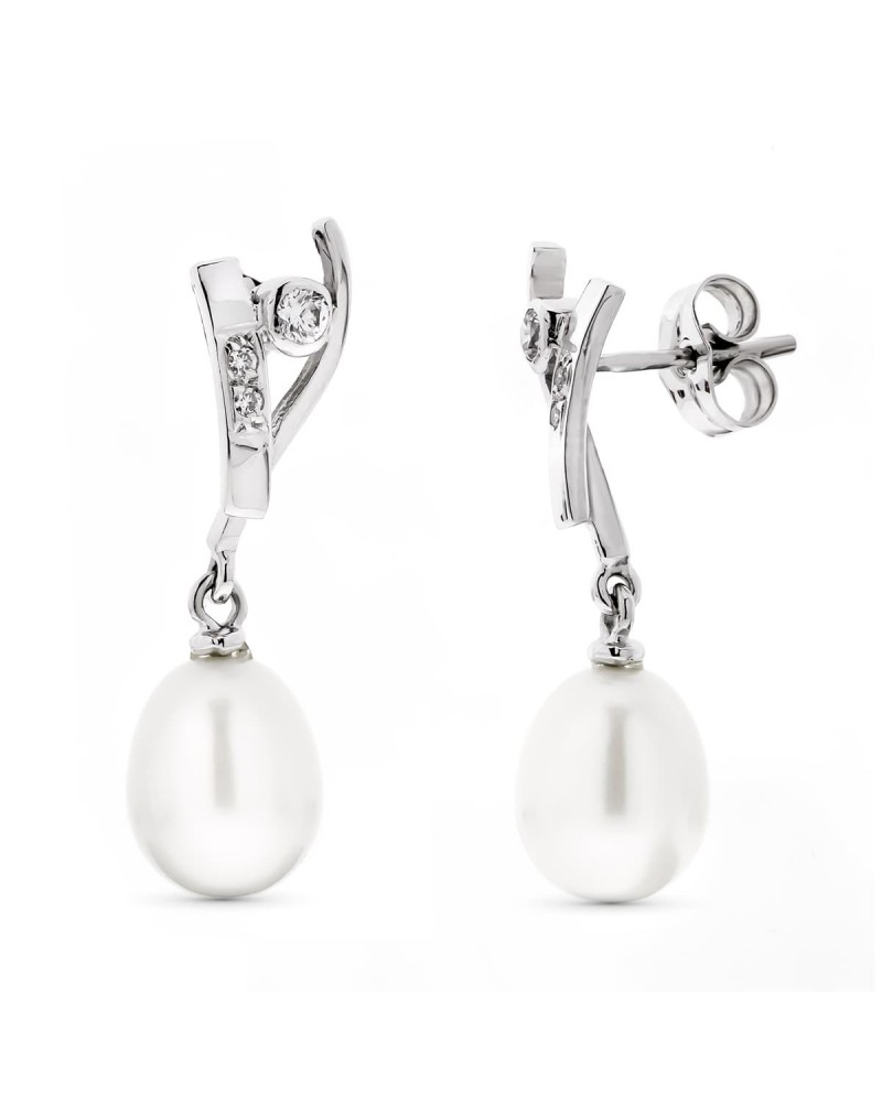 Elaborados en oro blanco de 18 kilates con acabado pulido brillante, estos pendientes incorporan circonita de gran calidad en la zona superior y auténticas perlas naturales colgantes. El sistema de cierre de presión garantiza comodidad y seguridad en el uso. Con un peso aproximado de 2,6 gramos, ofrecen la elegancia necesaria sin resultar pesados.