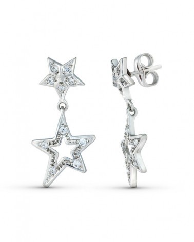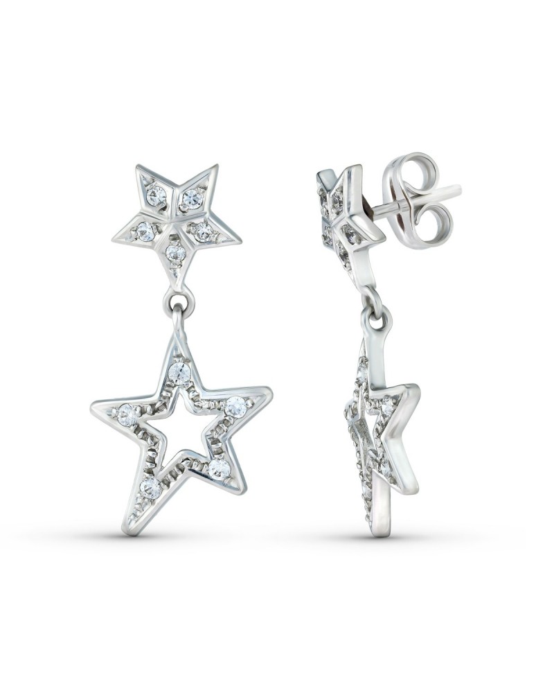 Pendientes oro blanco 18k estrellas circonitas 24x13mm