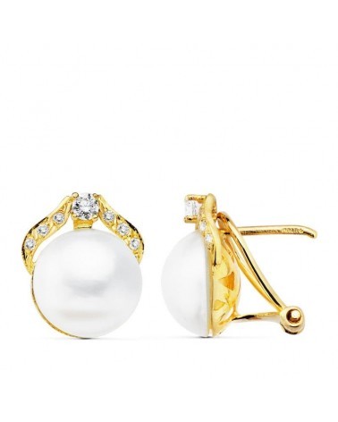 Pendientes oro 18k bicolor perla japonesa circonita omega