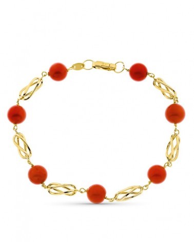 18K PULSERA ORO AMARILLO JAULA Y CORAL FINO JAPONES 8 MM
