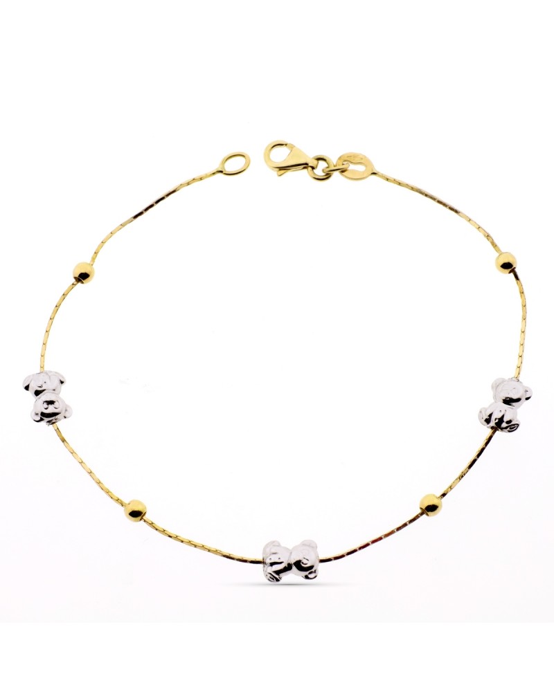 Pulsera oro 18k bicolor motivos oso 19cm