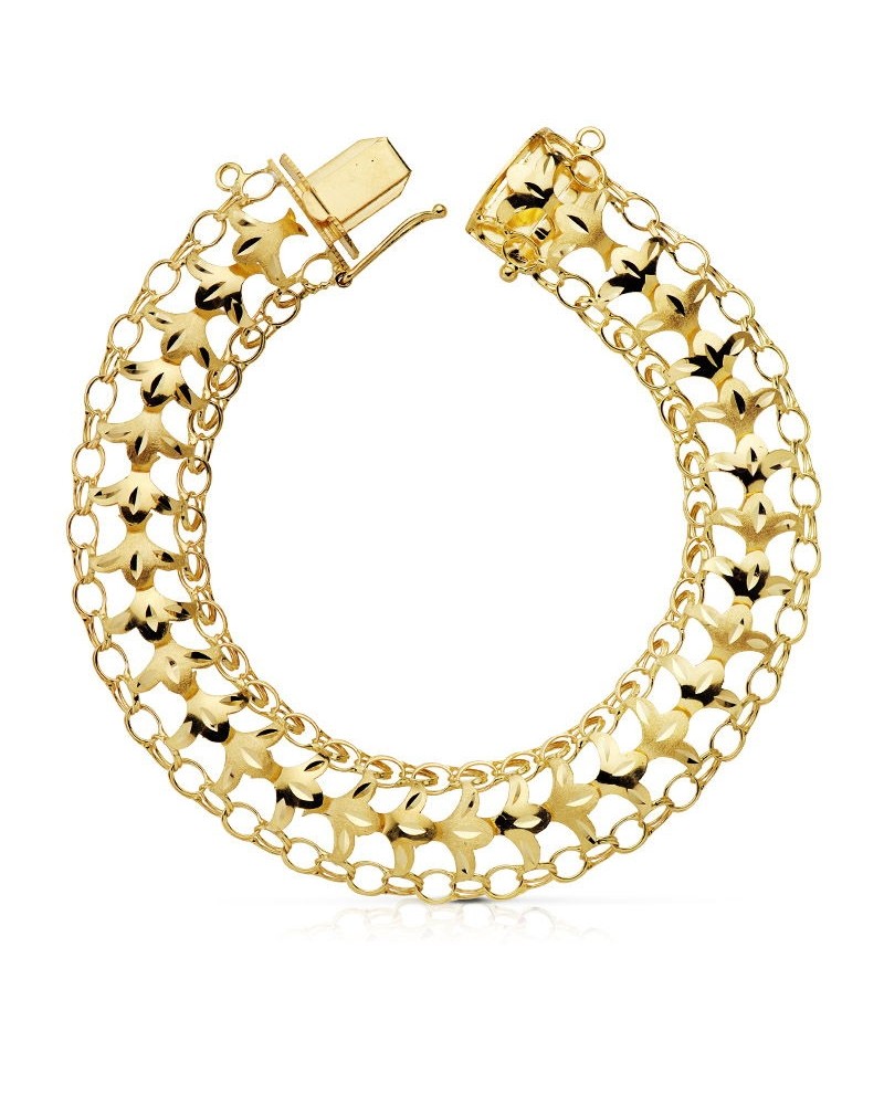 Pulsera de oro de 18 kilatesprincesas. Esta pulsera forma parte de la colección de oro de Falomir Joyas. Incluye una marca de contraste oficial 750, sello de fabricante y se entrega con estuche y marca de contraste oficial. Las características de esta pulsera son: Largo: 21 cm, ancho: 13 mm.