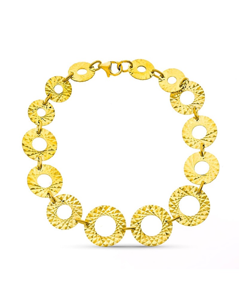 Pulsera oro 18k amarillo círculos tallados 13mm
