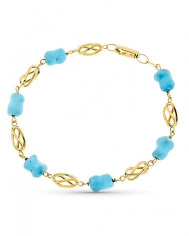 Pulsera oro amarillo 18k turquesa natural 20 cm 7,6 gramos