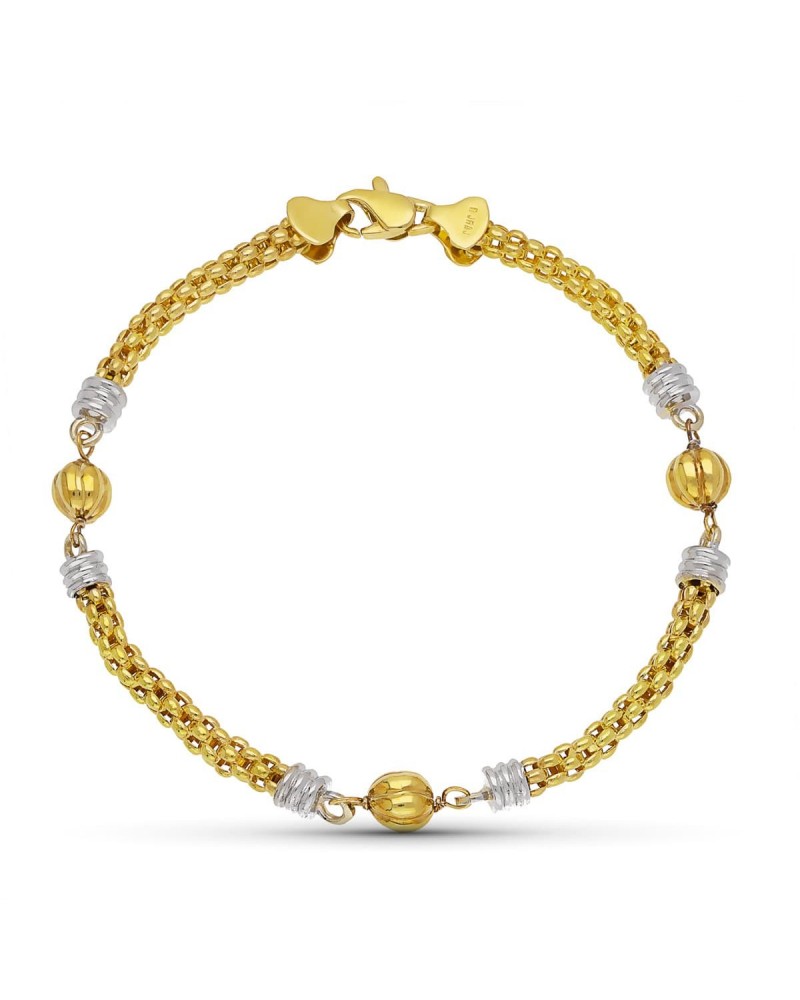 Pulsera oro 18k bicolor bolas gallón peso 7,8g