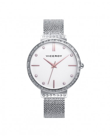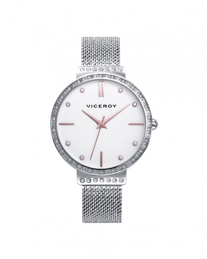 La cadena del reloj es una malla milanesa de acero. Y, cierre deslizante para poder ajustar la cadena al tamaño deseado.