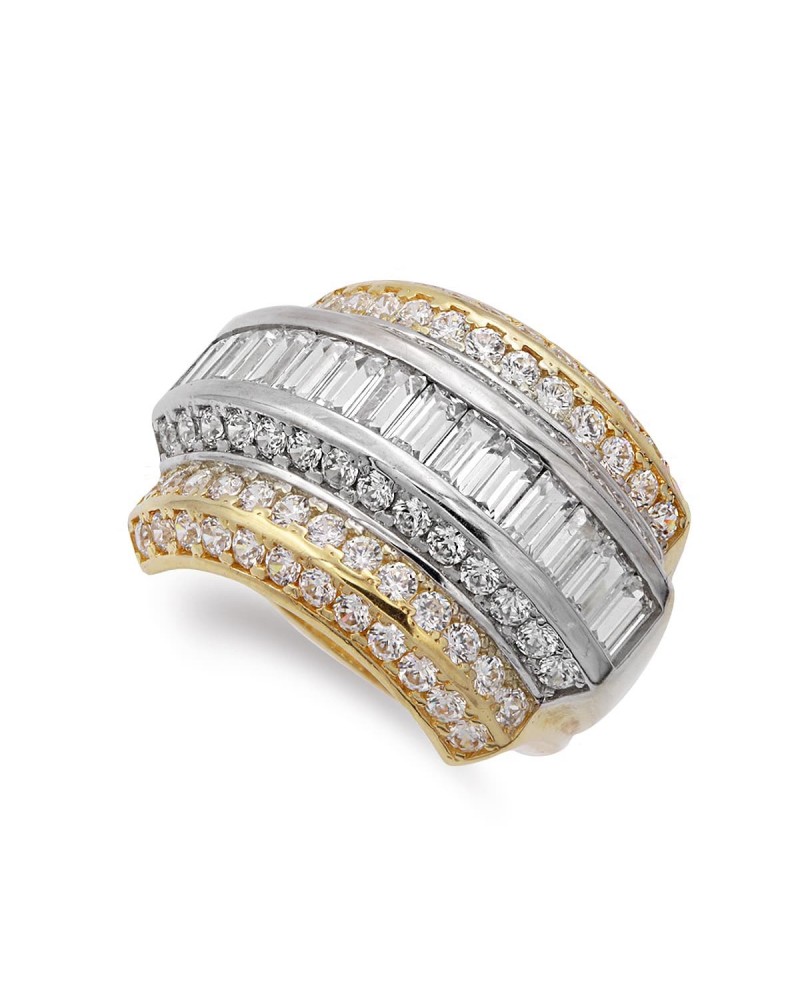 Sortija de oro blanco y amarillo de 18k con circonitas y barritas